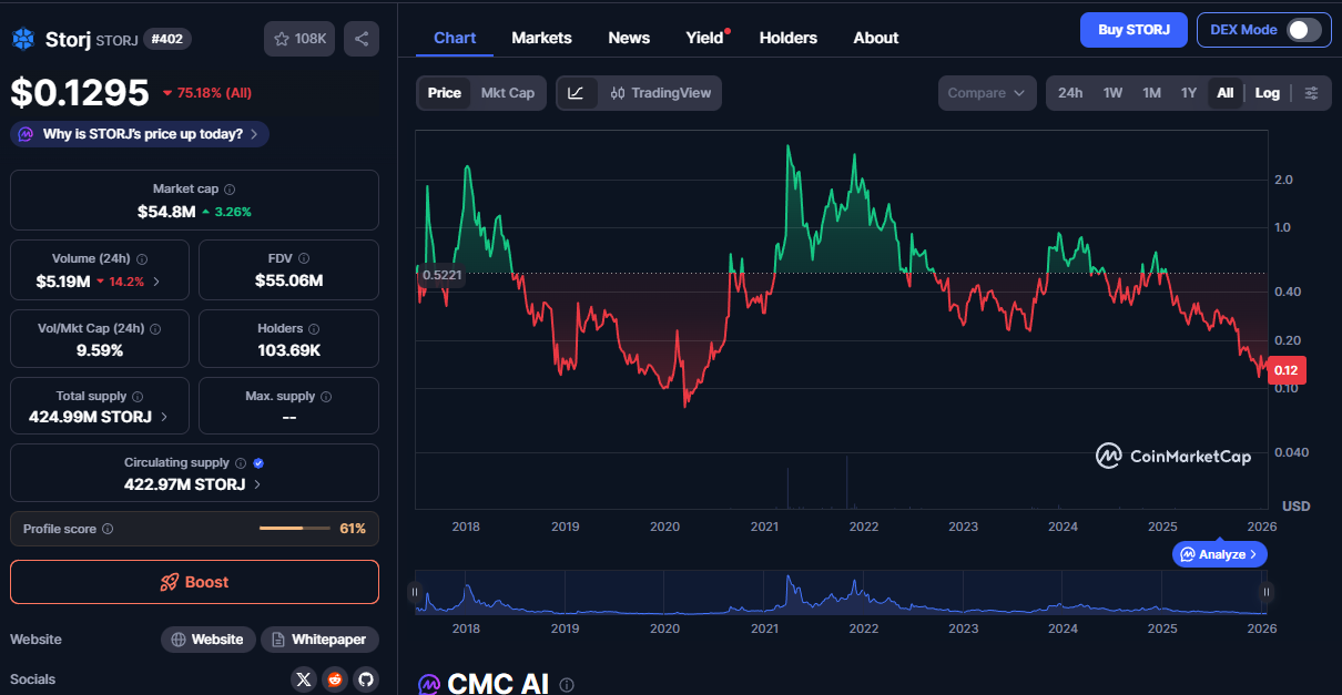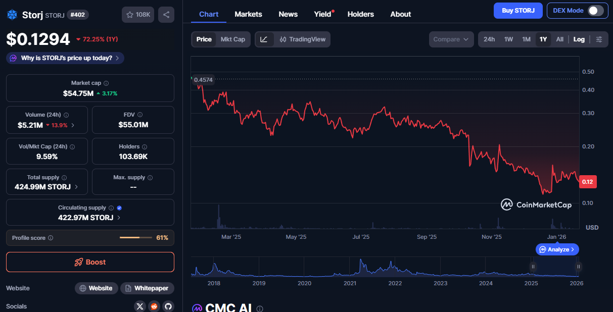 Если посмотреть на исторические цены токена, то можно увидеть, что монета практически полностью обесценилась. За нее на уровне ATH в 2021 году давали 3,91 доллара. В январе 2026 года она торгуется почти за 13 центов. При этом даже в рамках последнего года ее цена упала на 72%.