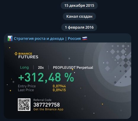 Канал Стратегия роста и дохода | Россия RU работает с 2015 года. С 1 февраля 2016 остались типичные посты: +300% на криптовалюте, скриншоты с демо-счета и попытки заработать на реферальных программах бирж.