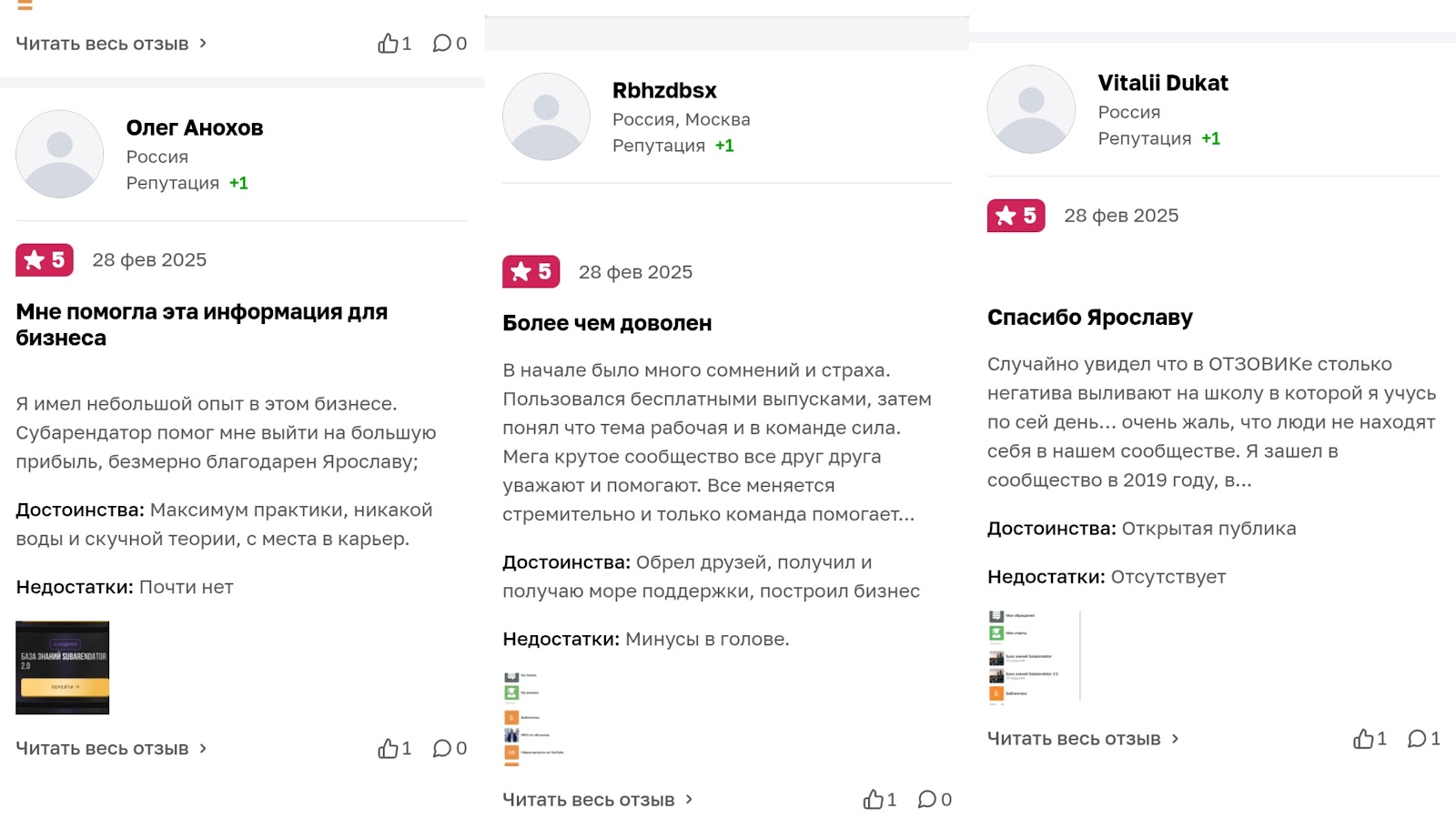 Кроме того, на площадках Ярослава предоставляется недостоверная информация о его проекте Sunny Days Apartment, который занимается посуточной арендой квартир. Вы можете поделиться своим мнением о создателе проекта или курсе в комментариях.
