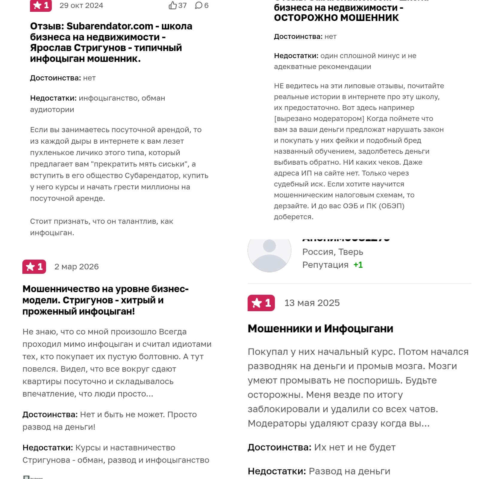 Обзор проекта Subarendator: отзывы о Стригунов, можно ли заработать на курсах по субаренде недвижимости