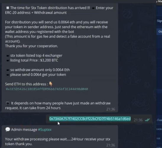 Однако указаний того, что бот был непосредственно связан с работой платформы не предоставляется. Более того, в видео описывается весьма сомнительная схема участия в дропе. Дело в том, что для того, чтобы получить монеты, у пользователей требовали внести на определенный адрес 0,0064 ETH.