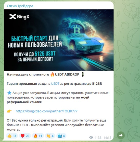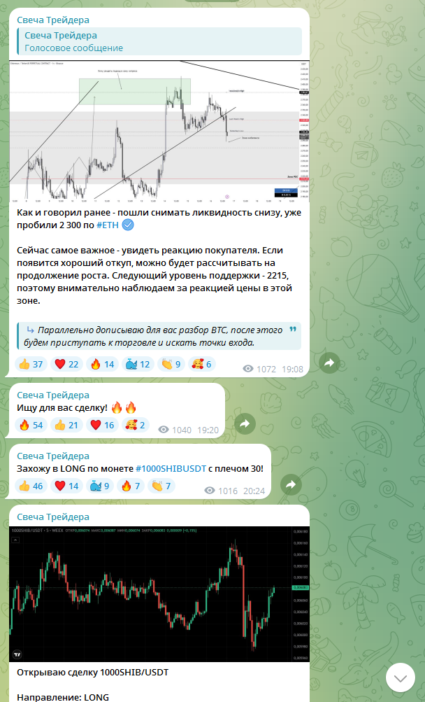 Деятельность телеграм-канала «Свеча Трейдера»