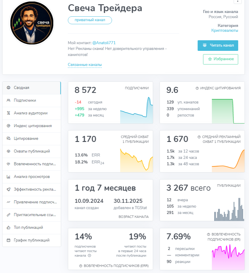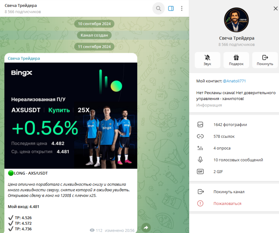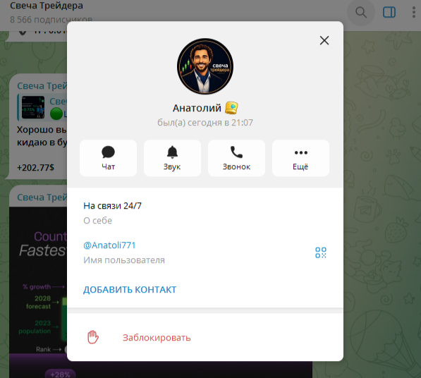 Обзор телеграм-канала «Свеча Трейдера», анализ деятельности и отзывы о трейдере Anatoli771