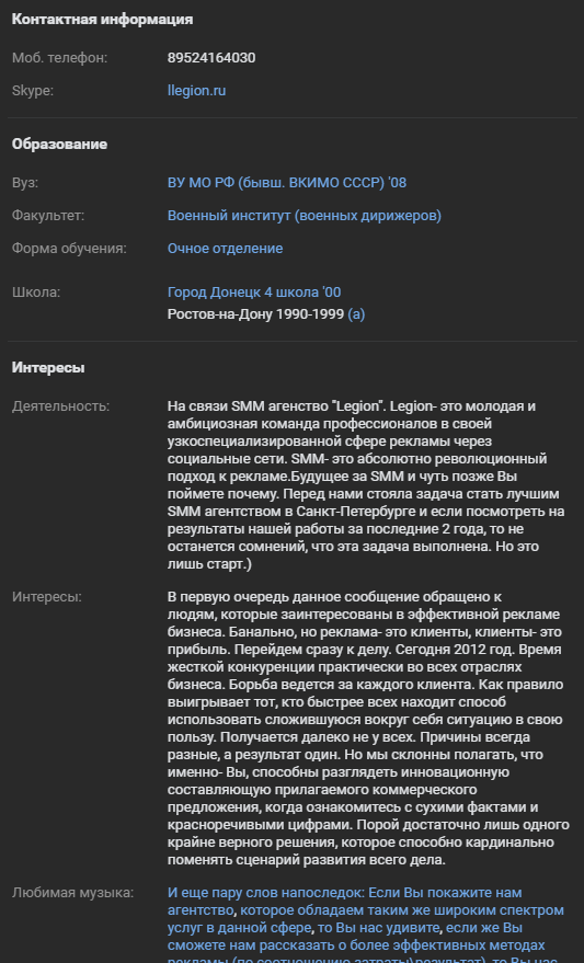 При этом проверка показала, что рекламный текст агентства был представлен в качестве описания к аккаунту некоего Виктора Александрова в ВК. Не исключено, что сервис для сбора информации о пользователе просто ошибся. Самого же агентства, по всей видимости, больше нет. Вероятно, пик активности проекта пришелся на 2012 год.