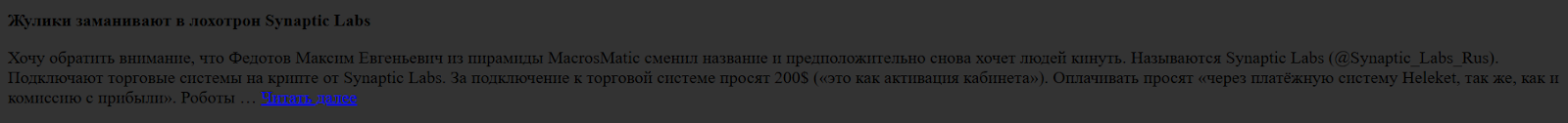 Synaptic Labs — это Telegram канал, через который продвигают роботов для автоматической торговли на бирже. Ранее он существовал под другим названием и уже успел получить низкие оценки у пользователей. Мы решили разобраться, является ли Synaptic Labs новым проектом или же это просто перезапуск старого канала с измененным брендом. Для этого провели собственное независимое расследование. Результатами анализа делимся с вами.