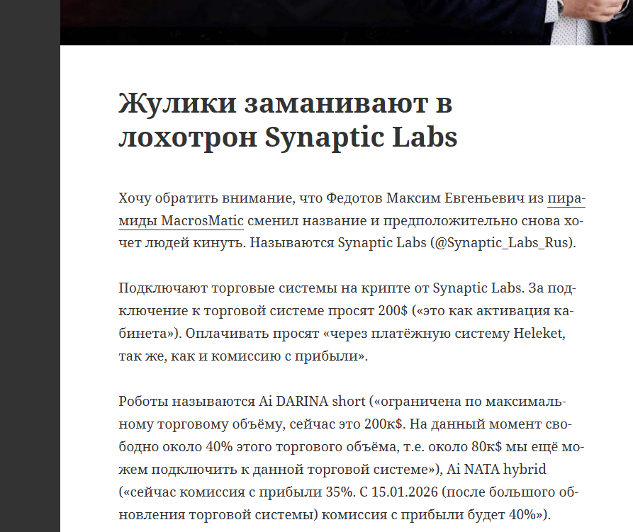 Synaptic Labs: отзывы, можно ли заработать с торговыми роботами Синаптик Лабс