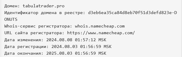 В августе 2025 года сайт проекта недоступен, по этой причине не представляется возможным выяснить, размещалась ли здесь какая-либо информация об основателях компании, дате и месте регистрации юрлица. Результаты проведенной проверки показали, что доменное имя tabulatrader pro было создано в марте 2024 года и закончило свою работу в марте 2025 года, по этой причине сайт брокера не работает.