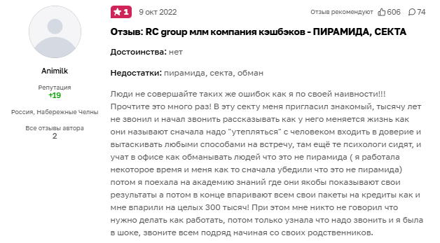 RC Group конечно можно назвать сектой, но это будет не совсем верно. Это классический МЛМ с заряженными участниками. Их учат по скрипту отвечать на возражения и постоянно защищать платформу.