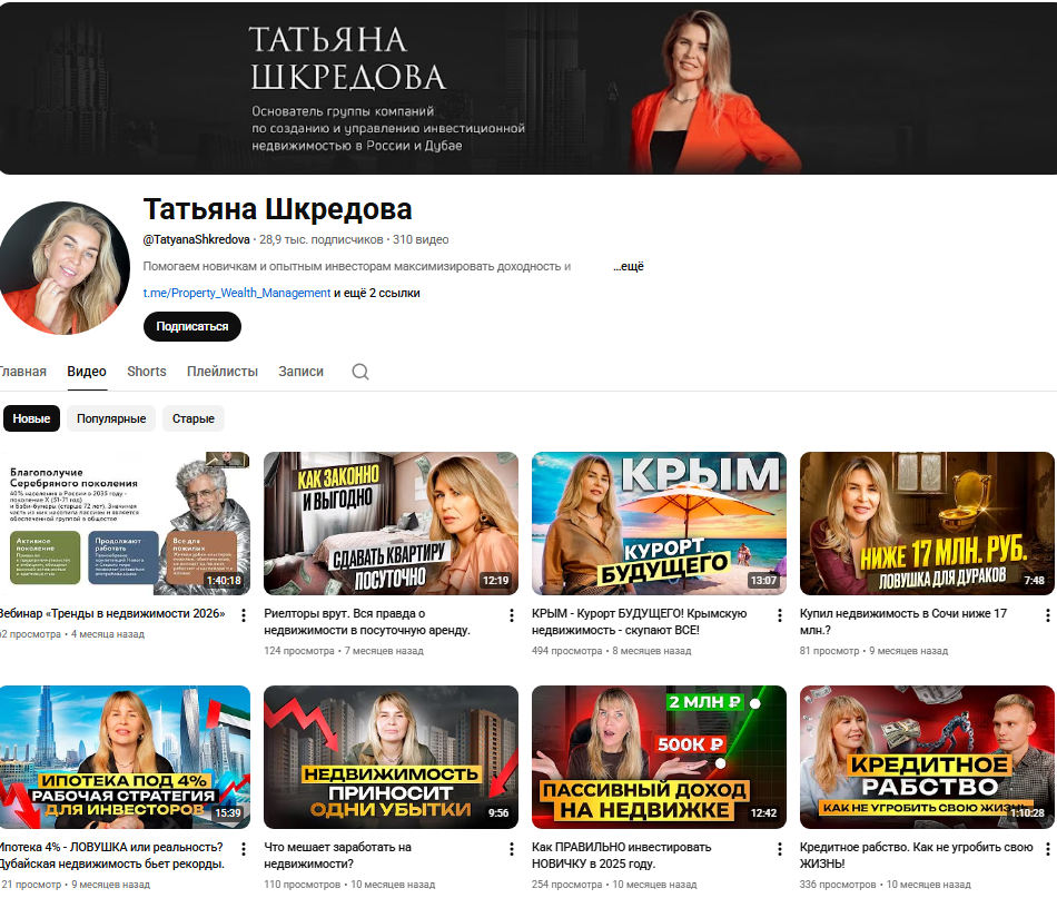 Честные отзывы о канале «Татьяна Шкредова | Недвижимость и пассивный доход»