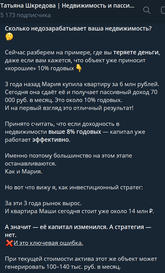 Татьяна Шкредова: объективный обзор телеграм-канала «Татьяна Шкредова Недвижимость и пассивный доход» и реальные отзывы о проекте в сети