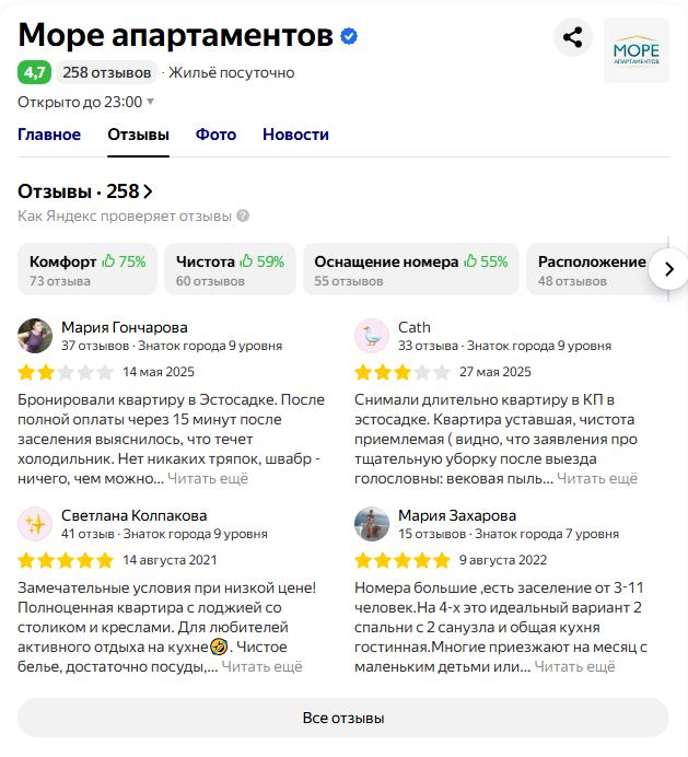 Отзывы об услугах Татьяны в сети не найдены. Есть только отклики о ее компании «Море апартаментов», но не от инвесторов, а от арендаторов. В целом репутация у фирмы хорошая.