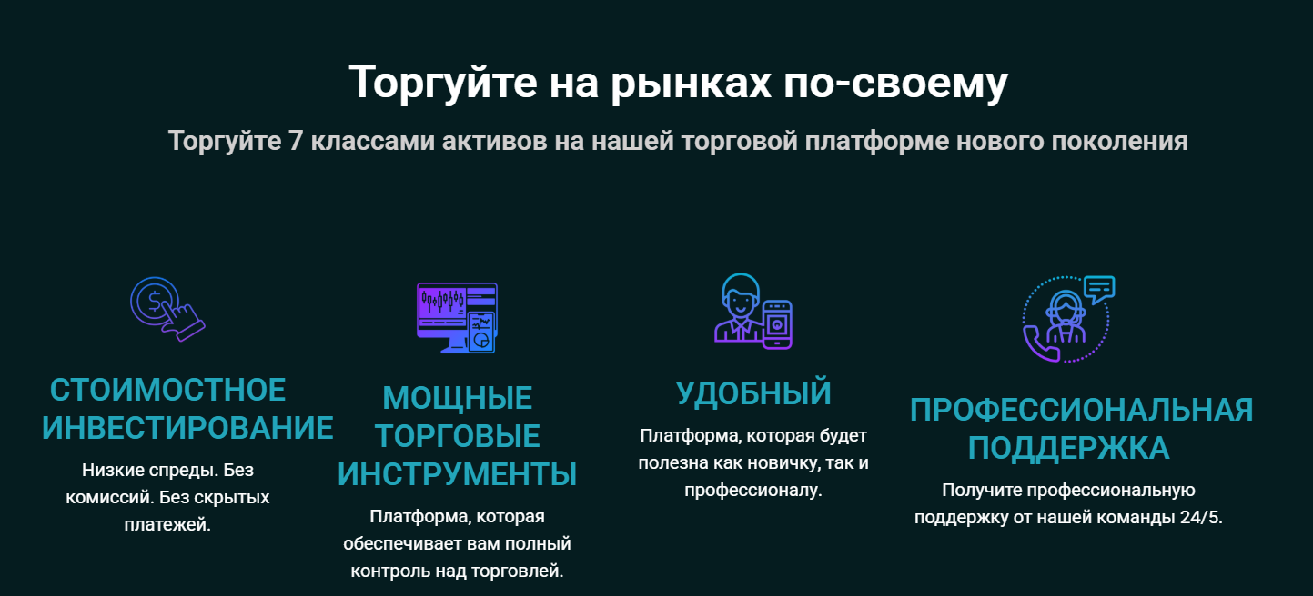 Минимальный депозит для заключения сделок определен в $250. Кредитное плечо для зарегистрированных аккаунтов – 1:500. Согласно презентационным материалам, брокер предоставляет на выбор несколько торговых счетов, но подробные условия сотрудничества доступны только после регистрации.