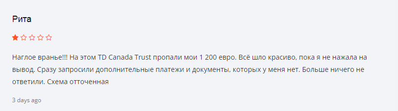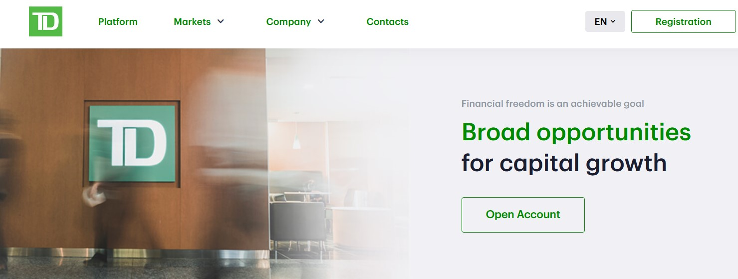 Упоминается наличие лицензии номер FCA 124859. И действительно, такая была выдана принадлежит банку Toronto-Dominion Bank. Но непонятно, какое отношение платформа к нему имеет, ведь это две разных компании, а на сайте самого банка нет никакого упоминания о Tbd Finances Co.