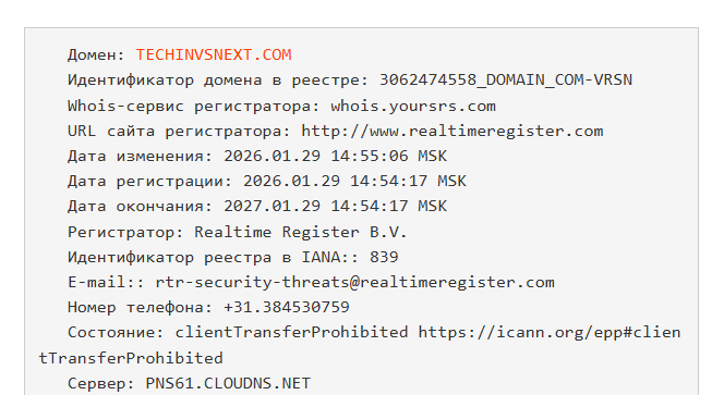 - На сайте TechInvsNext com полностью отсутствуют контакты службы поддержки и ссылки на соцсети, поэтому клиент не сможет оперативно решить проблему при сбое.