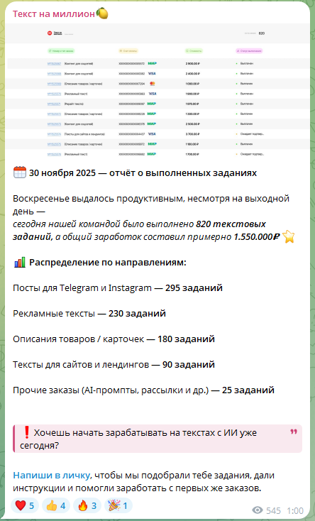 «Текст на миллион» — очередной хайп от Даниила tfmbot. Закрыли Work247 AI, теперь впаривают копирайтинг с ИИ. 5к подписчиков, а активность — ноль. Задания за деньги? Скорее, за воздух. Не ведитесь на этот развод.