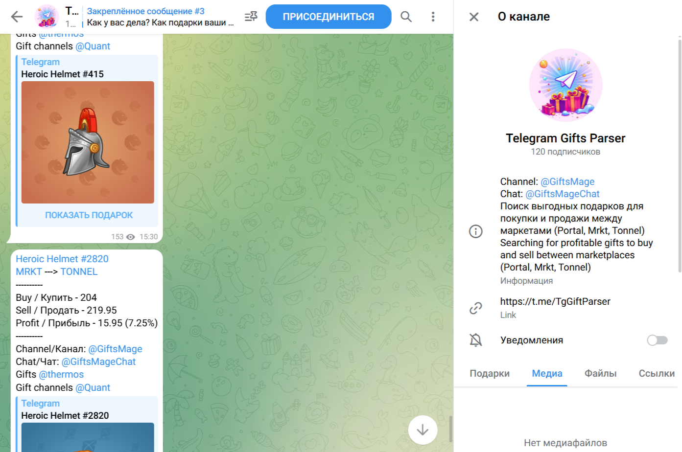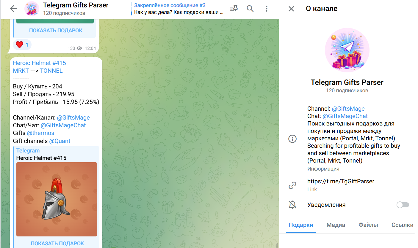 Телеграм-канал Telegram Gifts Parser: обзор и анализ деятельности проекта TgGiftParser