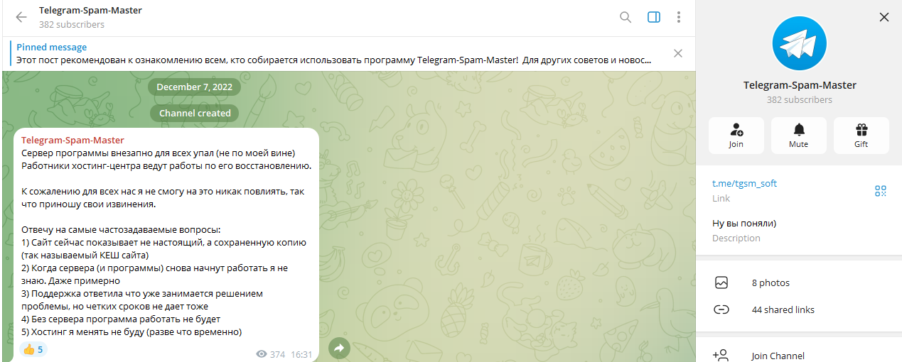 Основная информация о Телеграм Спам Мастер