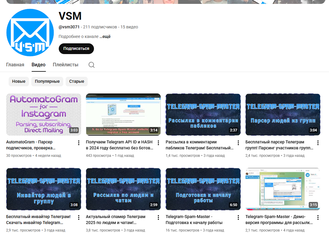 На Ютубе есть связанный канал, на котором рекламируются все программы автора, а также даются гайды по настройке и использованию сервиса. На канале только 211 подписчиков, но многие видео просматривают тысячи пользователей. Но видео почти не публикуются:
