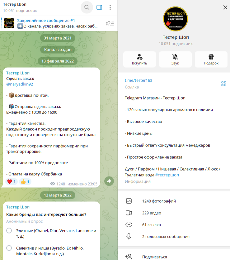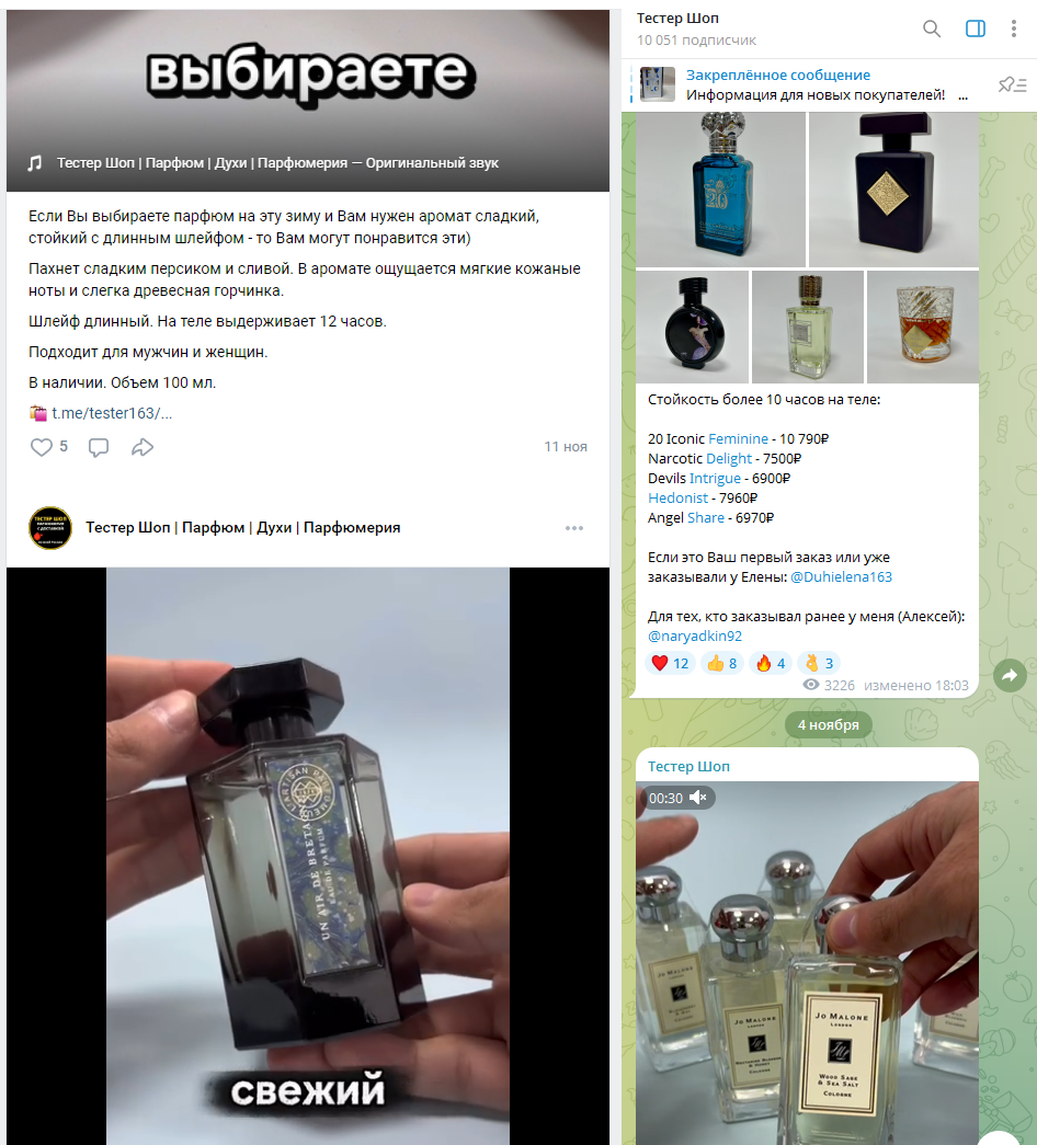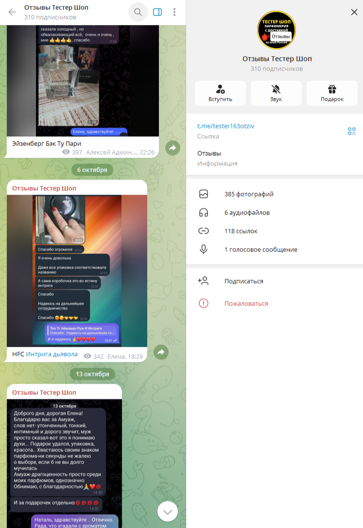 Обзор телеграмм-магазина парфюмерии с доставкой по России «Тестер Шоп», анализ деятельности и отзывы покупателей о проекте @ tester163