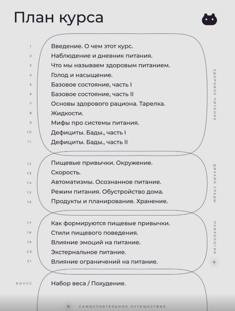 За 21 день пользователям предлагают рассказать много новых, интересных фактов. Программа похудения не индивидуальная. Курс похож на профессиональный психологический тренинг: много общей информации и мало конкретики.
