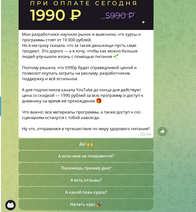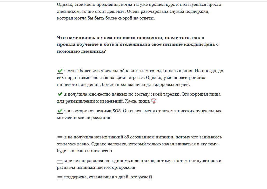 Но есть один нюанс, на который важно обратить внимание. Разработчики бота в рекламных статьях рассказывают, что данный бот – программа рекомендательного характера. Это просто систематизированная и правильно подобранная информация о проблемах лишнего веса, позаимствованная из материалов, которые есть в открытом доступе.