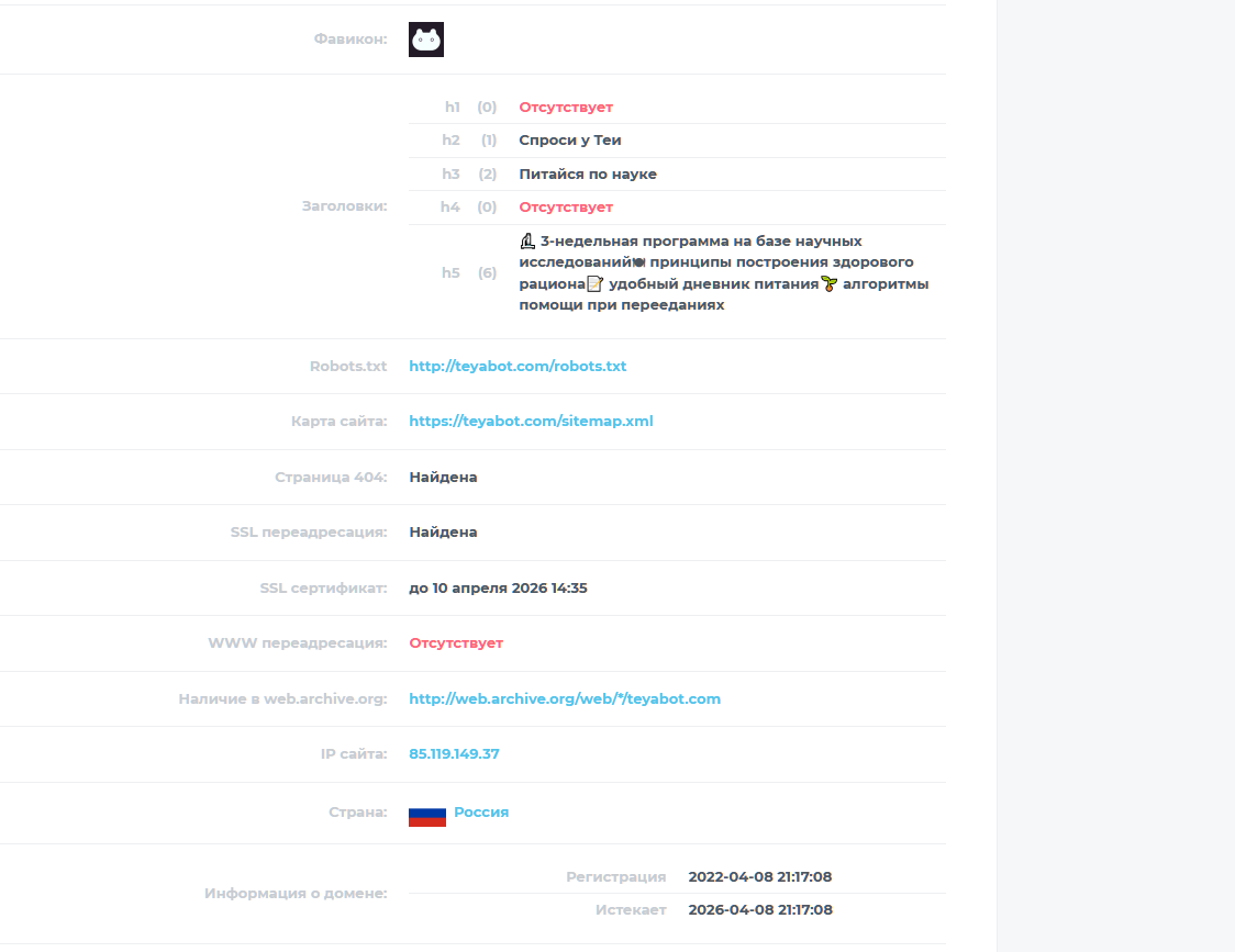 Блог «Тея» создан в апреле 2022 года, термин аренды домена сайта истекает в апреле 2026 года. Показалось немного странным, что успешные разработчики не озаботились созданием сайта.