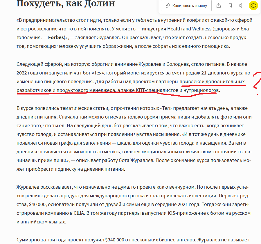 К разработке бота привлекались непонятные продуктовые менеджеры, довольно странный термин, неизвестные специалисты нутрициологи.