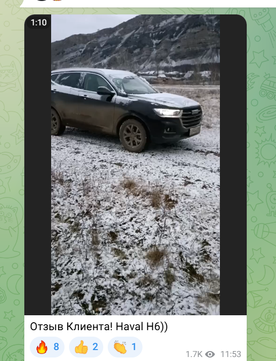 Периодически на канале Tg CarSale добавляются отзывы довольных клиентов о приобретенных автомобилях. Чаще всего они приводятся в формате видео. По желанию под публикациями можно оставить комментарии, ведь эта опция открыта.