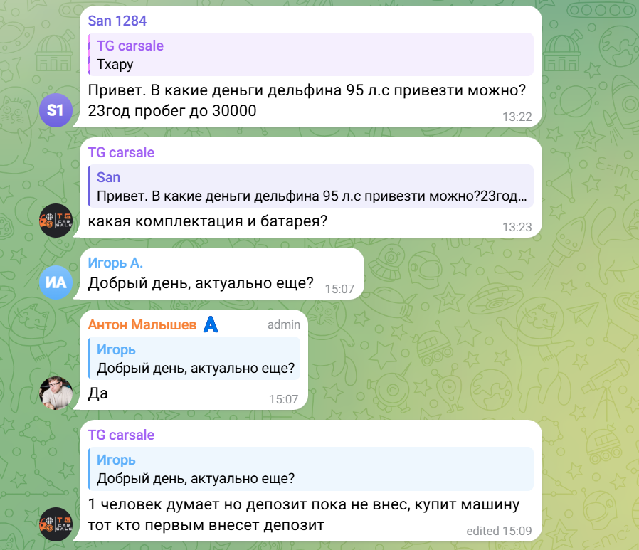 В комментариях расскажите, что вы думаете о Tg CarSale, и стоит ли покупать здесь автомобили.