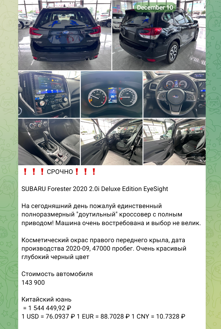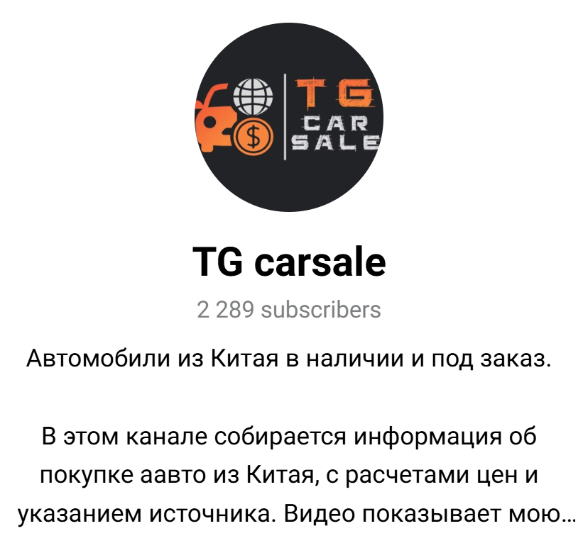 Для продвижения услуг представители компании создали сообщество Tg CarSale в Телеграмме. В описании сообщества говорится о продаже автомобилей, в том числе под заказ. При этом на канале приводятся сведения о покупке транспорта из Поднебесной с подобным расчетом стоимости.