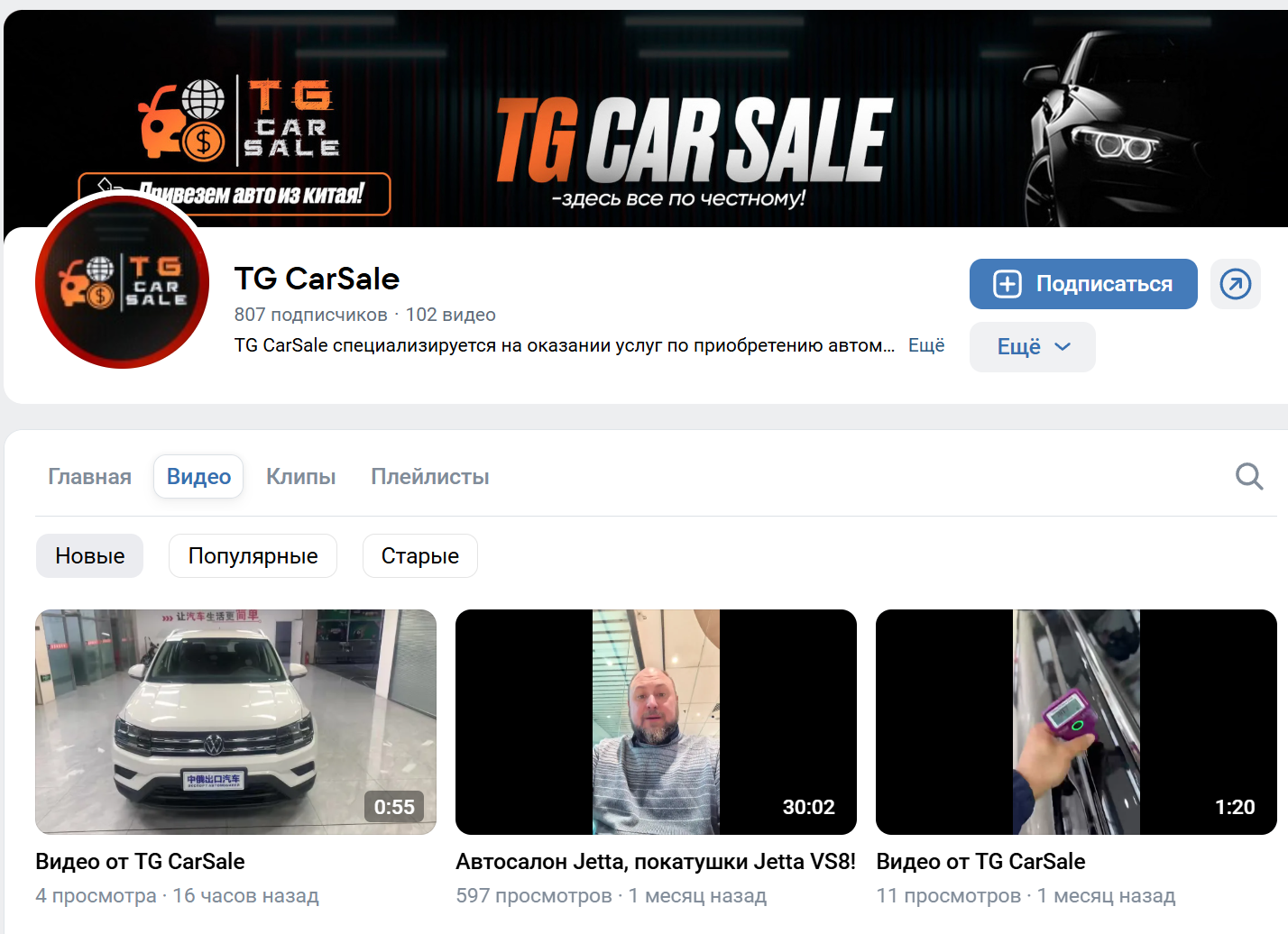 Дополнительно клиентам доступен профиль tg_carsale в ВКВидео. Он является частью рассмотренного выше проекта. На вторую половину декабря 2025-го здесь добавлено свыше сотни роликов. В них можно посмотреть обзоры машин, отзывы клиентов о купленном транспорте. Также приводятся детальные рекомендации по особенностям подбора транспорта и оформления покупки. Периодичность обновления контента — где-то 1-2 ролика в месяц, но бывает и чаще.