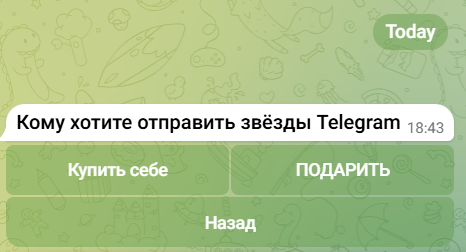 При покупке ТГ-валюты пользователю предлагают выбрать, приобретает ли он для себя или в подарок. При выборе второго варианта нужно ввести юзернейм получателя. За один раз можно отправить от 50 до 200 000 звезд или выбрать готовый пакет от 50 до 2000.