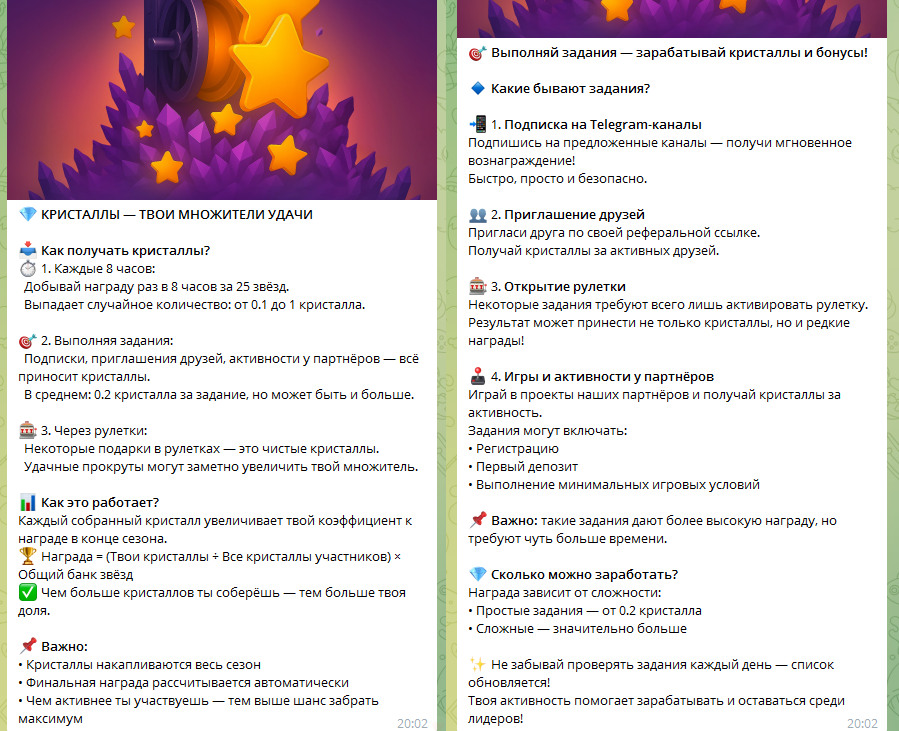 Как оказалось, за ежедневный заход в телеграм-приложение «Старс Банк», игроку будет начисляться валюта в виде кристаллов. Собирать ее нужно 2 раза в день: с 00:00 до 12:00 и с 12:00 до 00:00 по московскому времени.