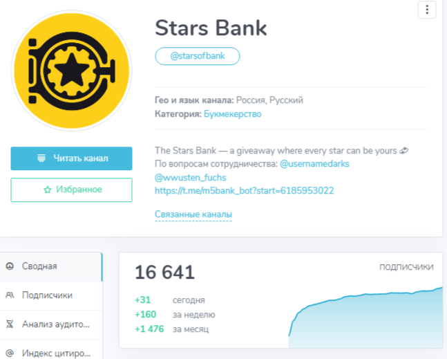 Мы проверили статистику телеграм-канала «Старс Банк» и обнаружили, что тут идет резкий рост подписчиков. Похоже, владельцы проекта используют накрутку ботов, чтобы выставить себя востребованным источником. Ведь если бы это были реальные участники, ресурс имел бы успешную репутацию в сети.