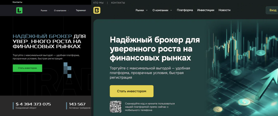 - Демонстрация фейковой статистики и поддельных финансовых лицензий;
