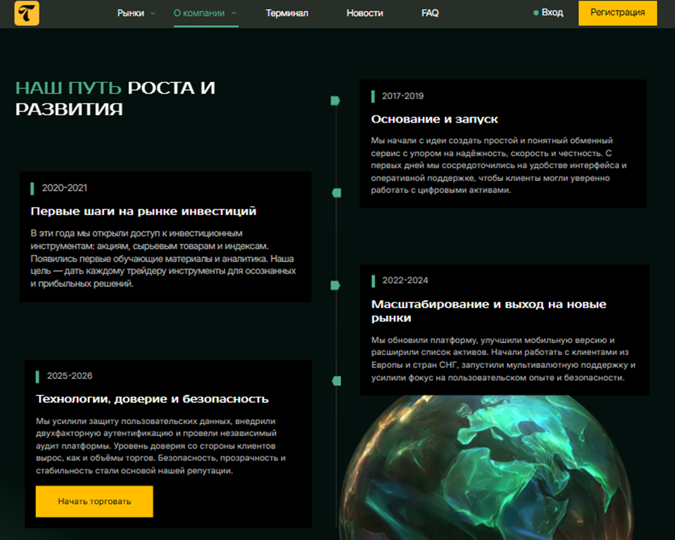 На сайте Tiffintin Org рассказывают о надежной бирже с многолетним опытом работы и безупречной деловой репутацией. «Надежная платформа для торговли без границ» обещает новым пользователям целый ряд преференций: