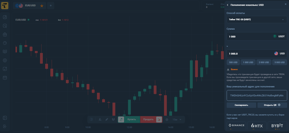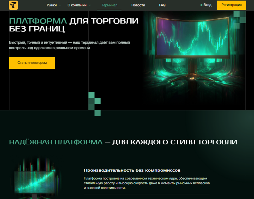 - Унифицированный доступ к фондовому, криптовалютному, сырьевому и валютному рынкам с единого аккаунта;
