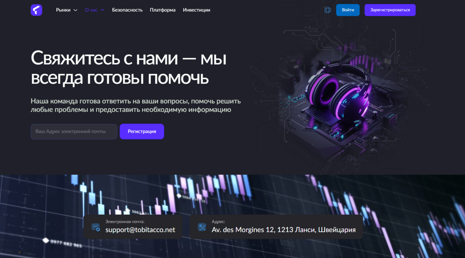 Ресурс сомнительного брокера – клон торговых площадок pelvimina com, tobita cco top, plyofox com и т. д. У порталов, обвиненных в мошенничестве, различны лишь оттенки и некоторые элементы дизайна, а также названия и адреса компаний. Вкладки «О нас» всех проектов содержат сказку о брокерской организации, которая успешно трудится с 2014 года и обладает очень престижными наградами. Адрес регистрации нашей компании: Av. des Morgines 12, 1213 Lancy, Switzerland.