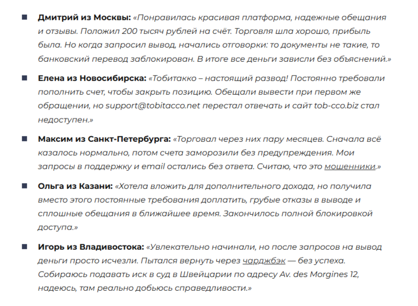 Отзывы о брокере Tobitacco