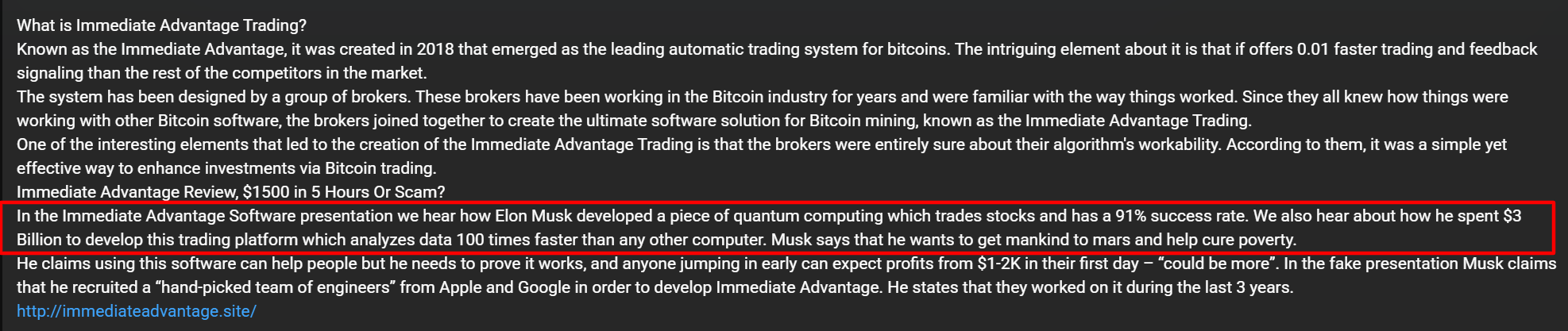 - владелец сайта пытается выдать его за разработку Илона Маска, что совсем смешно.