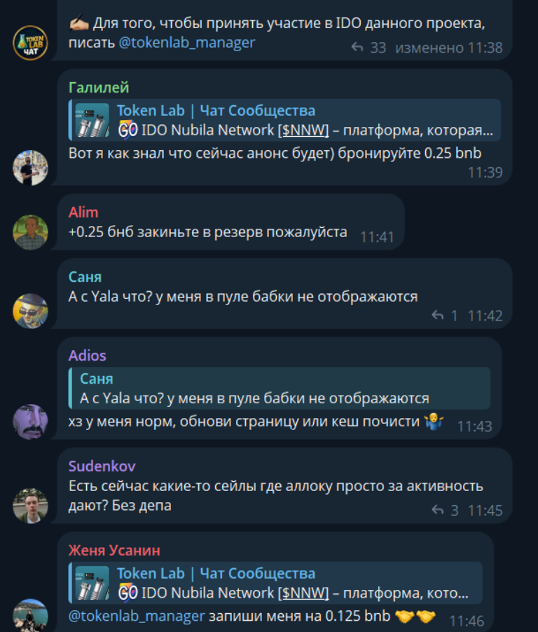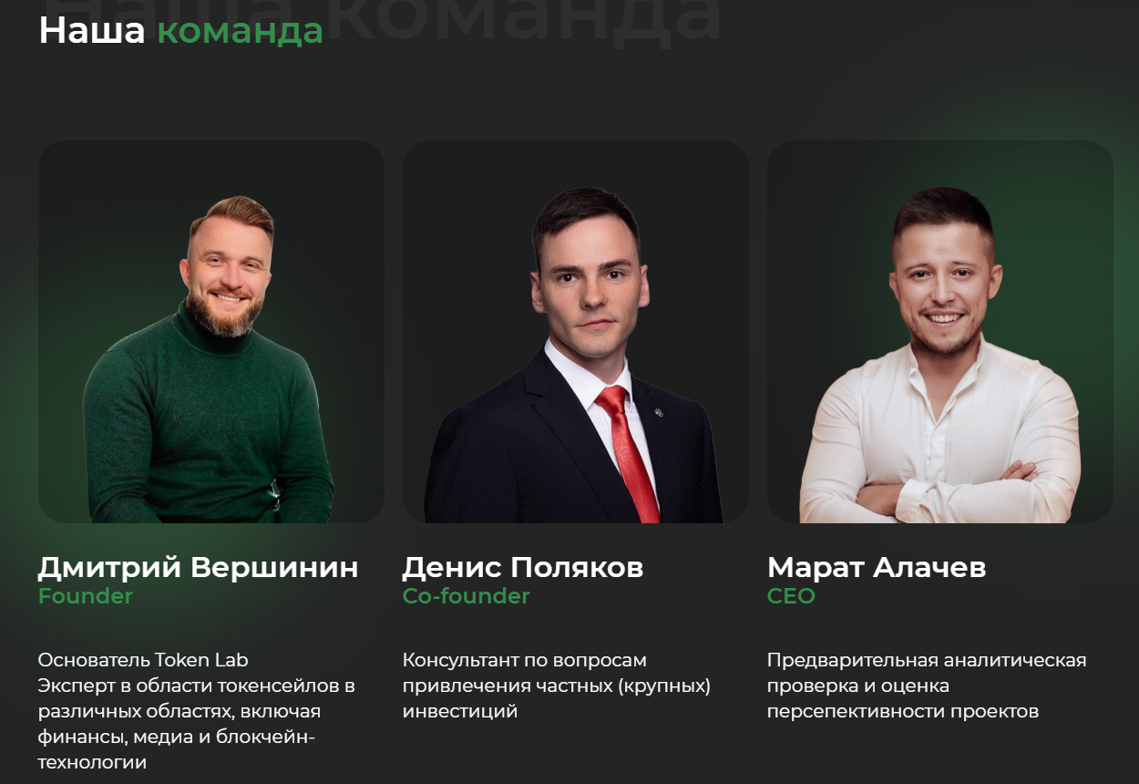 - Положительные отзывы о «Токен Лаб» публикуются в собственных чатах проекта, а независимых подтверждений успеха нет, что может указывать на отсутствие реального интереса со стороны криптанов.