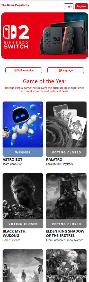 На главной странице есть только список популярных игр, за которые предлагают голосовать, чтобы выбрать проект года. Попробовав зарегистрироваться, мы узнали, что сделать это невозможно без специального инвайт-кода.