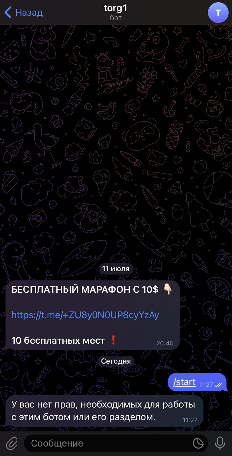 Он не отвечает на команду «/pay». Однако при стартовом запросе заявляет следующее: