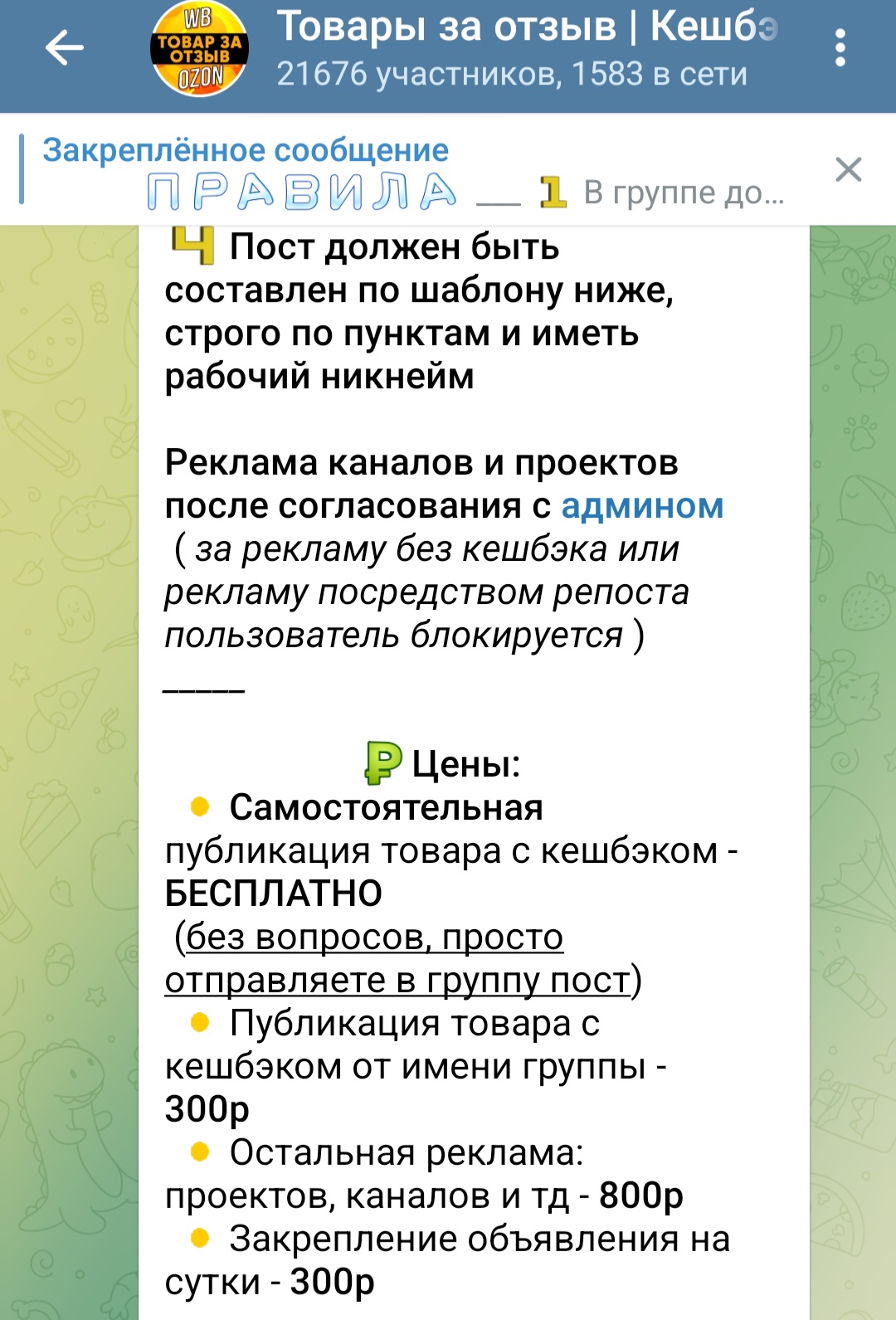 Tovarov admin также предлагает рекламировать каналы и сайты через свое сообщество. Цена составляет около 800 рублей за пост. Те, кто хочет, чтобы его объявление привлекло больше человек, могут закрепить его на сутки за 300 рублей.
