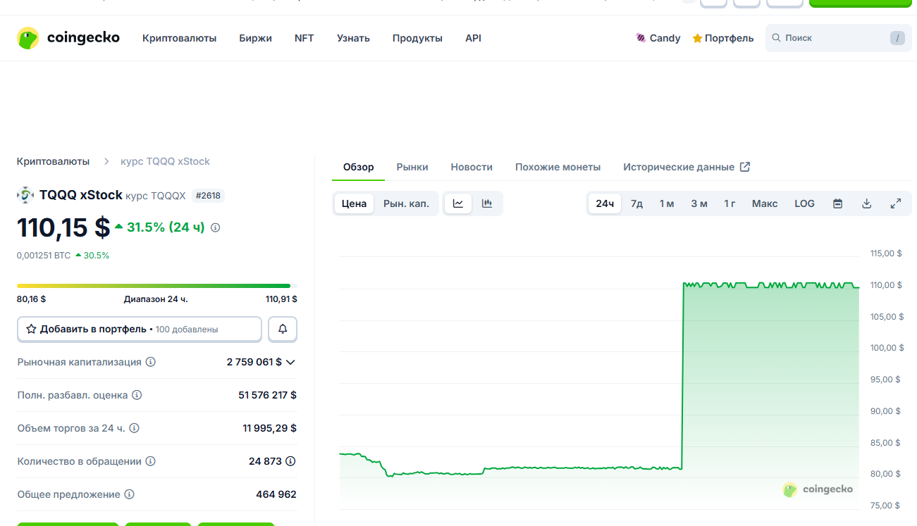 Однако фактическая привязка оказалась нестабильной: котировки Tqqqx начали расходиться с реальным движением фонда, что ставит под сомнение способность токена выполнять свою заявленную функцию зеркального отображения финансового инструмента.