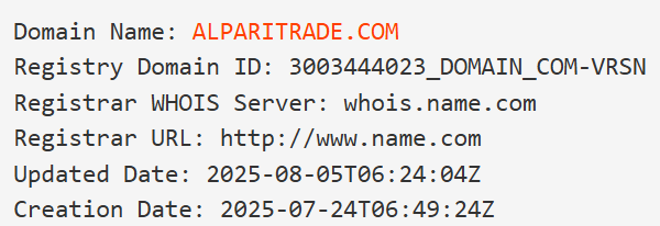 Создан сайт Alparitrade Com Ru в августе 2025 года, то есть совсем недавно. Тот факт, что проект «сдулся» почти после появления, красноречиво намекает на скам со стороны его организаторов.
