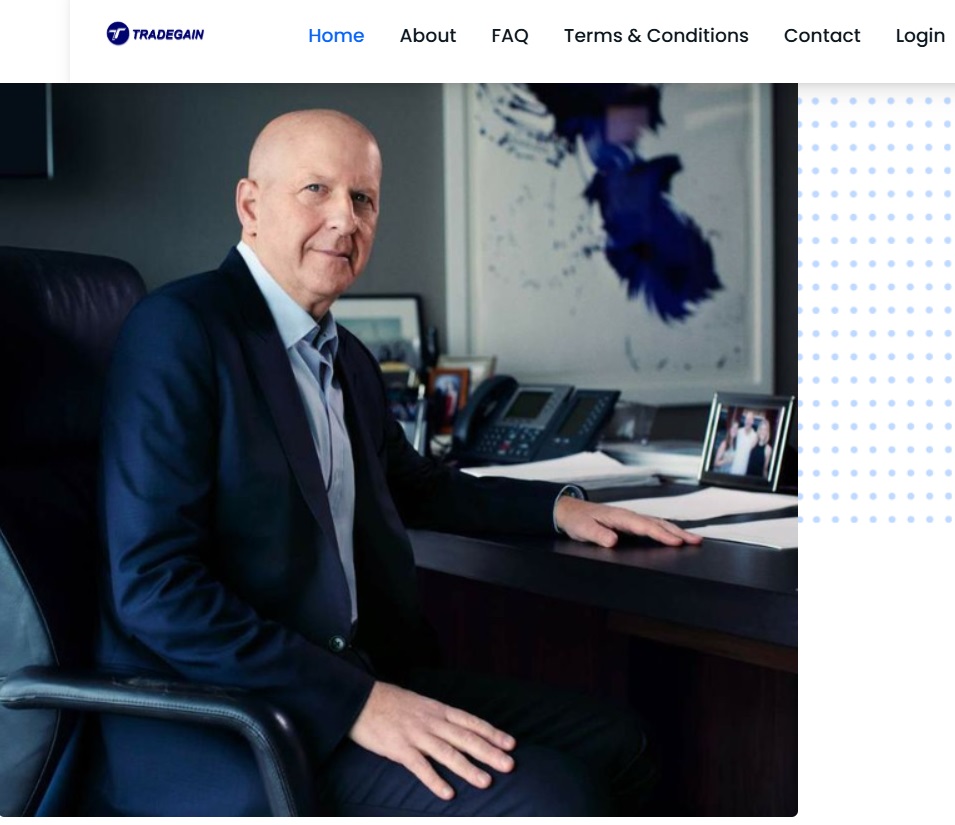 Сайт tradegain org зарегистрирован 19 сентября 2024 года. До этой даты проект не существовал. Никакой подтвержденной многолетней истории, о которой говорится в разделе “О нас”, обнаружить не удалось. Юридическая информация о компании отсутствует полностью. Чтобы придать солидности своей легенде, в этом же разделе разработчики разместили фото Девида Соломона — руководителя одного из самых крупных инвестиционных банков Америки Goldman Sachs. На должности Генерального Директора он работает с 2018 года и к Трейдгейн не имеет никакого отношения.