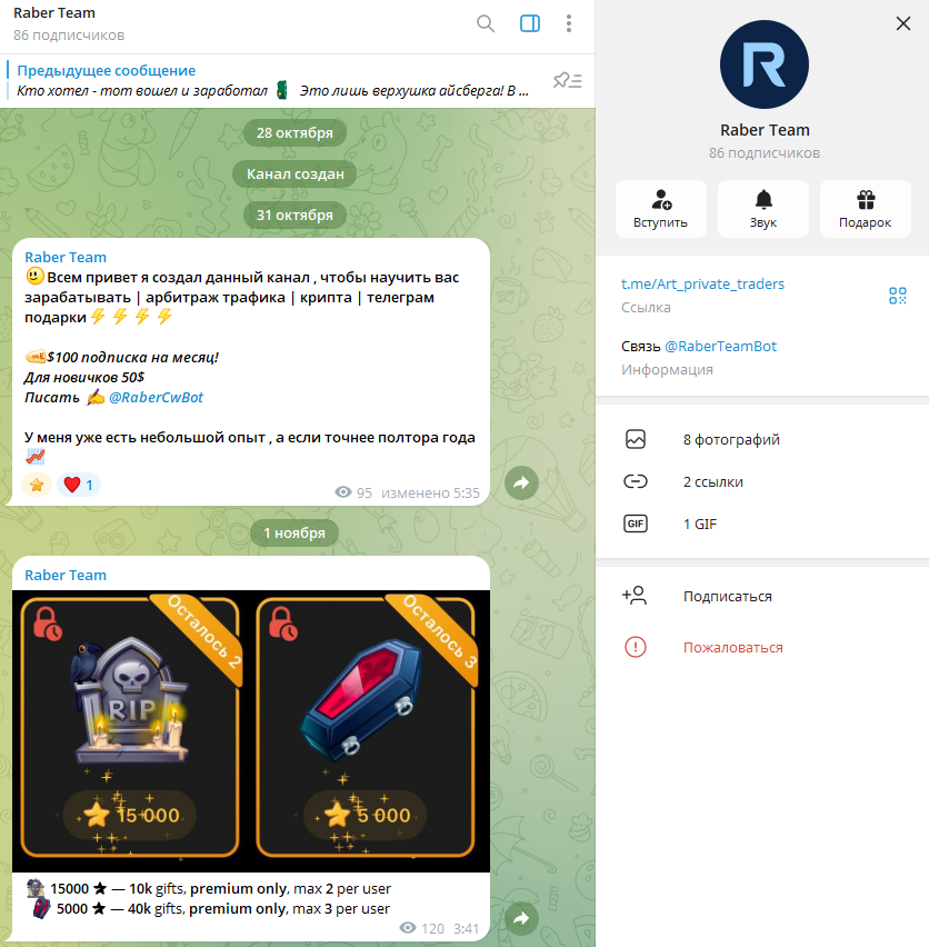 Raber Team (ранее TradingHub) – сообщество в Телеграм, запущенное неким Артемом Орловым. Себя автор пытался позиционировать не только как опытного трейдера, но и криптоарбитражника, эксперта в гифтах от Тг. Проект получил неоднозначные оценки, поэтому мы провели его проверку.