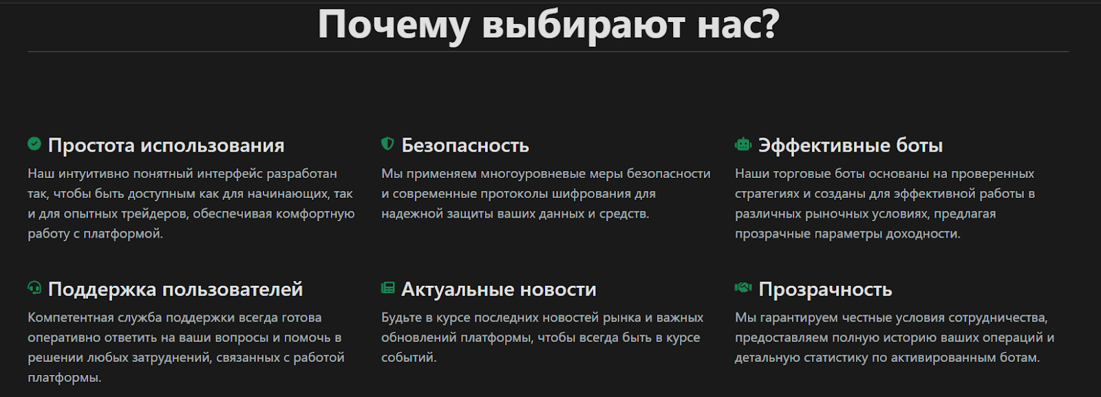 Клиентам обещают постоянную поддержку, прозрачность и простоту в использовании.