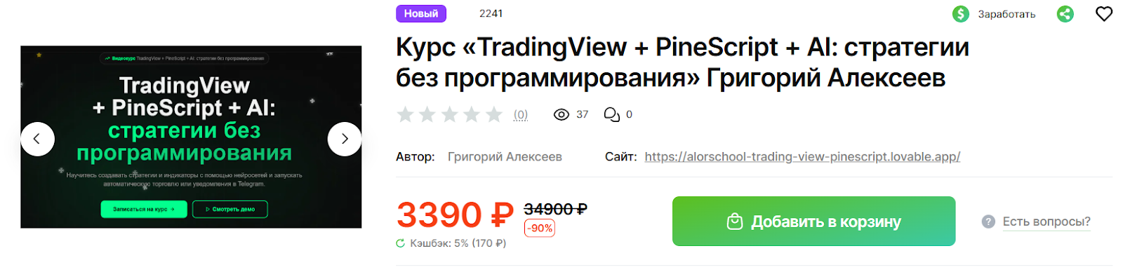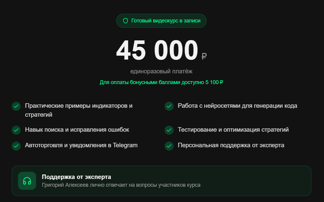 Обзор курса «TradingView + PineScript + AI: стратегии без программирования 2025»: отзывы о качестве материалов, проверка информации об авторе и анализ деятельности трейдера Григория Алексеева